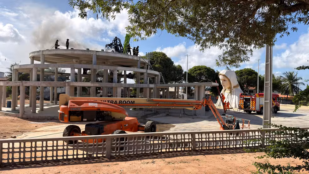Um incêndio de grandes proporções destruiu nessa terça-feira (24) a estátua de Nossa Senhora de Fátima que estava sendo construída no bairro Pajuçara, na Zona Norte