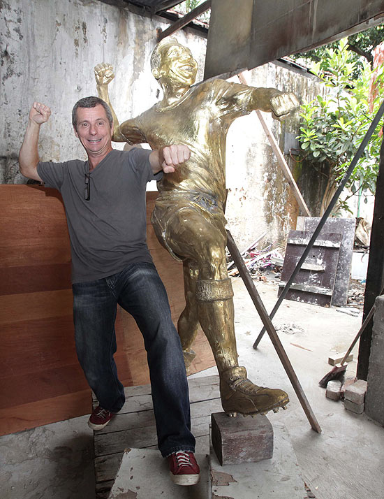 Pelé será homenageado no novo Maracanã. O governo do Estado vai inaugurar um estátua do craque na reabertura do estádio. A peça de bronze terá 1,84 m de altura e retratará o ex-jogador dando um soco no ar. A estátua pesará cerca de 300 quilos e ficará fixada em apenas um ponto. A homenagem a Pelé é inspirada na comemoração do marcado contra a então Tchecoslováquia na Copa de 1970. “É uma obra difícil pela plasticidade do momento. Eu costumo dizer que uma estátua de bronze precisa conter a alma de quem está sendo representado. Acho que consegui colocar a explosão daquele instante do soco no ar”, o cartunista Ique, autor da peça.
