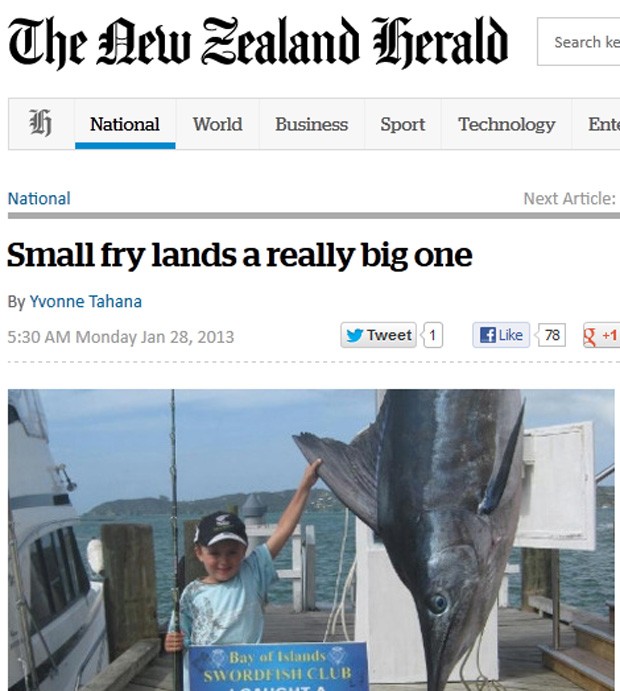 O menino, que pesa apenas 23 kg e pesca desde os 3 anos, estava com o pai e os avós no barco quando o peixe enorme mordeu a isca. Os adultos na embarcação perceberam que o peixe era grande e começaram a ajudar e dar conselhos para que o animal fosse fisgado, de acordo com o jornal “New Zeland Herald”.