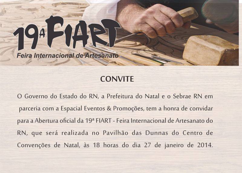 A 19ª edição da Feira Internacional de Artesanato do RN prossegue no Pavilhão das Dunas do Centro de Convenções, apresentando nesta segunda sua abertura oficial com a presença das autoridades a partir das 18h, seguida de visitação aos 385 espaços de venda. O evento que foi aberto na sexta e prossegue até o dia 2 de fevereiro, funcionando das 15 às 22h e tendo variada programação cultural a partir das 18h. Nesta segunda tem trio de forró Santa Maria, grupo juvenil do EDTAM, Trupi Ashaki Cia de Dança, grupo cultural do IFRN e da SEMTAS, banda de música de São Gonçalo do Amarante e show com Andrei e Andrezinho e banda Café.