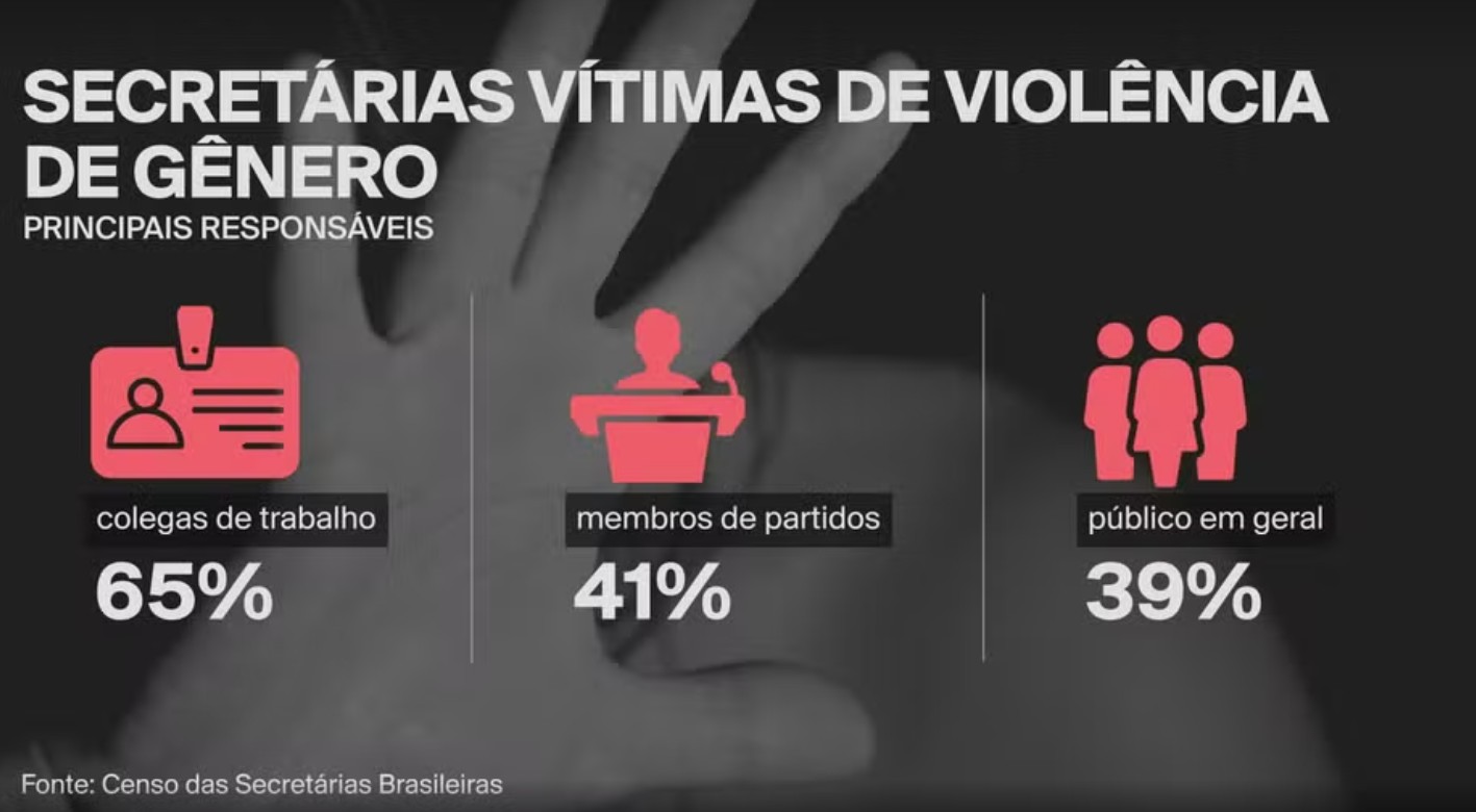 Um levantamento obtido pela GloboNews com exclusividade aponta que 43% do total de mulheres com cargos em secretarias municipais e estaduais afirmam ter sido vítimas de violência de gênero enquanto estavam em exercício do cargo.