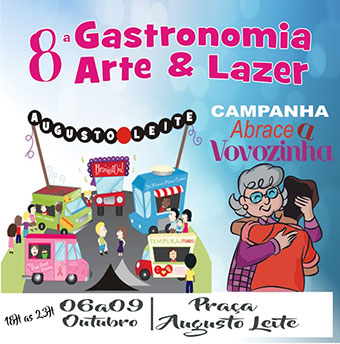 A 8ª edição da “Gastronomia, Artes & Lazer” trará para o público a culinária gourmet, com preços acessíveis, além dos tradicionais pratos com camarão, creme de bacalhau gourmet e bolinhos e pastel de bacalhau, pizzas, sanduíches especiais, calzones, docinhos finos, pastel sol na nata, de brigadeiro e outros sabores. O evento contará com os conhecidos “food trucks”, como San Gugas e o Fuscrepe, especializado em crepe francês.