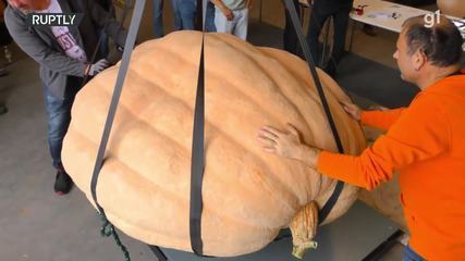 O fazendeiro alemão Hubertus Elmar venceu uma competição europeia de pesagem de abóbora, que aconteceu na cidade de Ludwigsburg, na Alemanha, nesse domingo (03). O fruto pesava cerca de 744 kg.