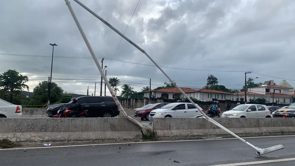 Um acidente de trânsito envolvendo três veículos acabou derrubando um poste e interditando parte da BR-101 em frente ao campus da Universidade Federal do Rio Grande do Norte (UFRN), na Zona Sul de Natal, no início da manhã desta terça-feira (27).