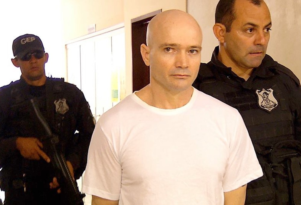 Alexandre chegou às 8h30 ao Fórum Miguel Seabra Fagundes, no bairro de Lagoa Nova, na Zona Sul da cidade, onde seria julgado pelo crime de homicídio qualificado. Ele desceu algemado do carro do sistema prisional.