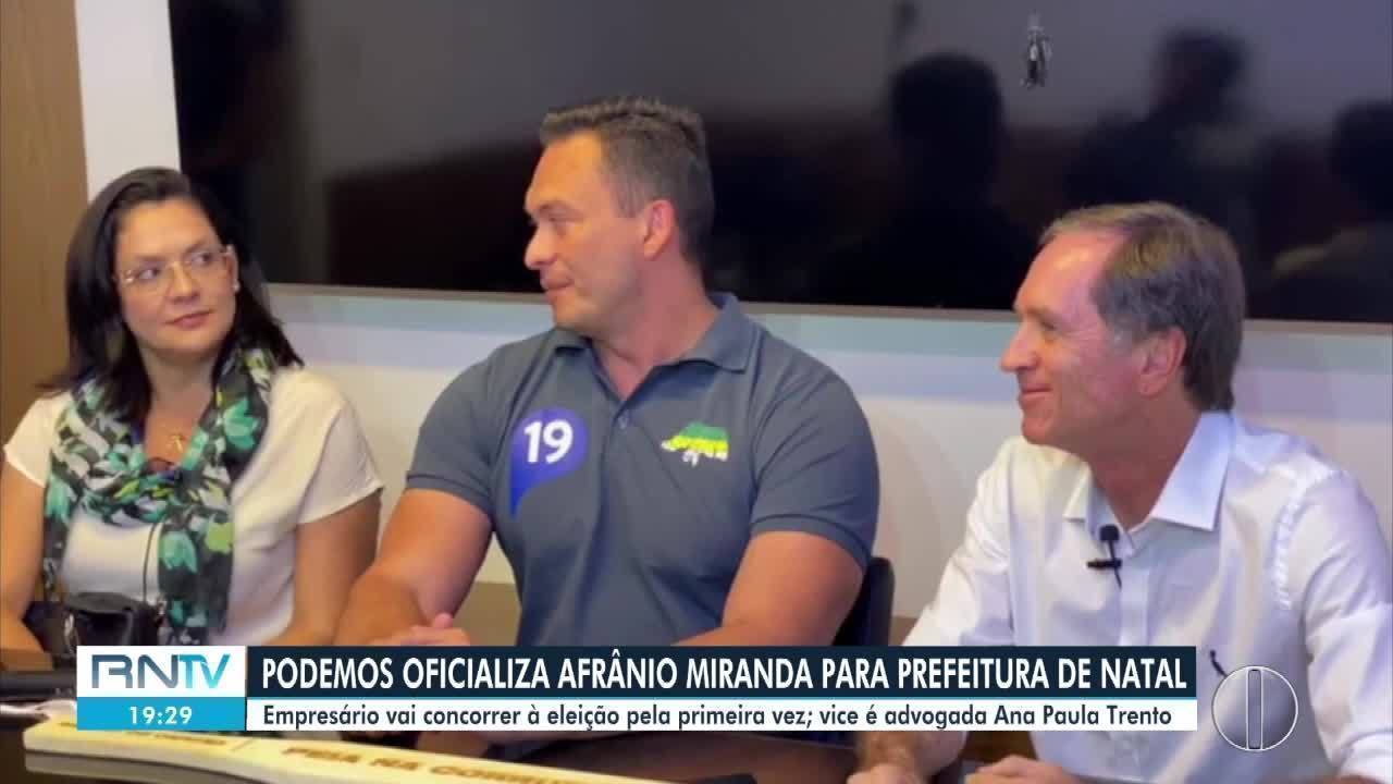 O Podemos oficializou nessa segunda-feira (7) a candidatura de Afrânio Miranda para a Prefeitura de Natal nas Eleições 2020. O anúncio aconteceu durante a convenção partidária. A vice na chapa será a advogada Paula Trento, do mesmo partido.