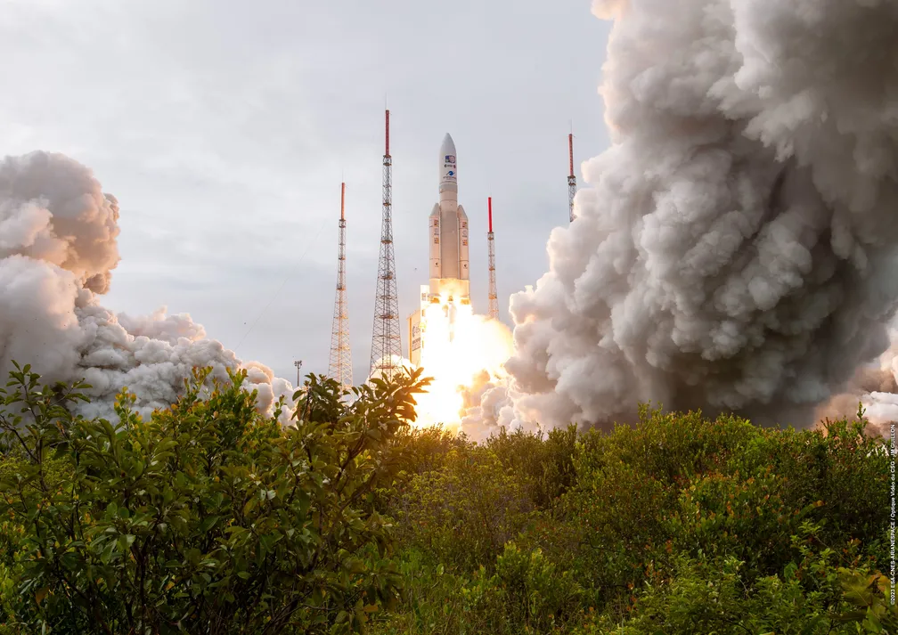 A sonda foi lançada com sucesso da base europeia de Kourou, na Guiana Francesa, perto das 9h15 da manhã no horário de Brasília.
