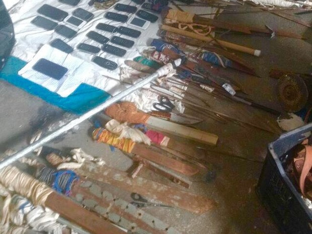 Um revólver, mais de 500 facas artesanais, celulares e drogas foram achados na manhã desta sexta-feira (27) na Penitenciária Estadual de Alcaçuz. A informação foi confirmada pelo governo do estado. Homens do Grupo de Operações Especiais (GOE) do governo do Rio Grande do Norte e agentes penitenciários da força-tarefa federal realizaram uma operação nos pavilhoes 4 e 5 nesta manhã.