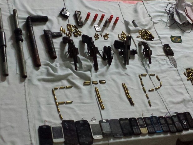 Além disso, os agentes também apreenderam diversas munições, de calibre 32, calibre 38, calibre 380, calibre 635 e calibre 12. O secretário de Justiça e Cidadania do Rio Grande do Norte, Wallber Virgolino, confirmou ao G1 a informação e disse que a revista feita nesta madrugada resultou ainda na apreensão de celulares.