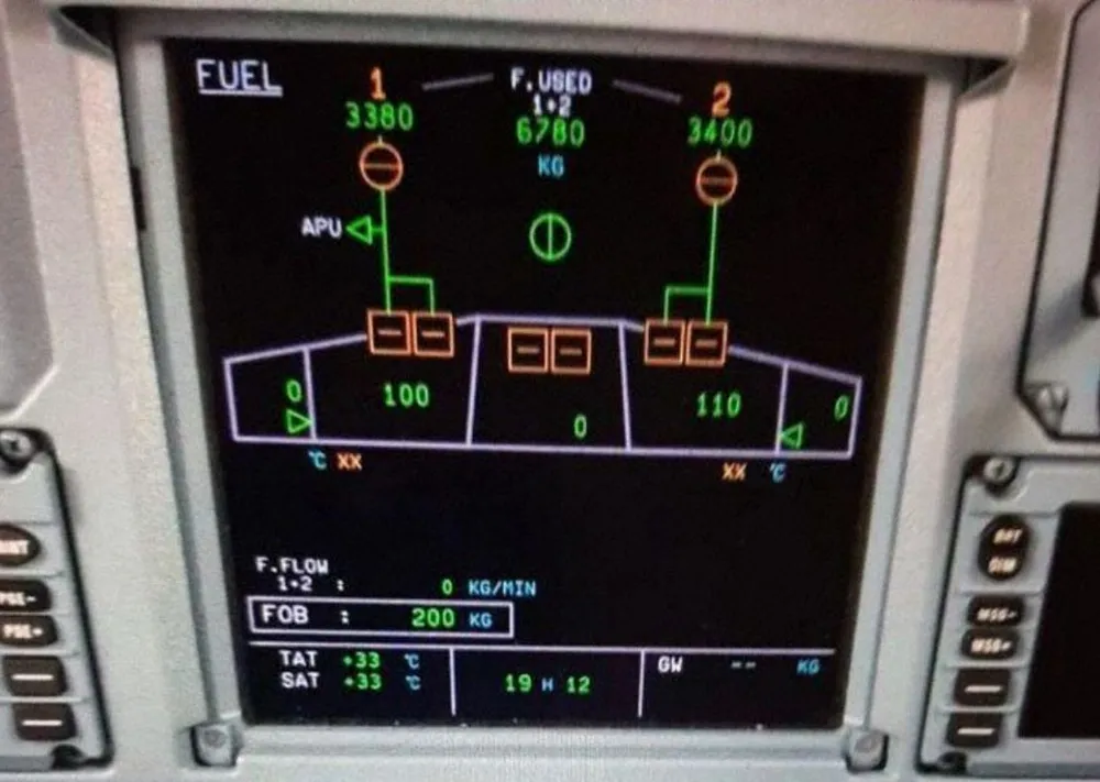 Foi graças a uma foto feita por um passageiro que o caso do avião da Viva Air veio à tona. A imagem mostra o painel com a indicação de FOB (sigla em inglês para “combustível a bordo”) com indicação de 200 kg –ou seis minutos restantes, considerando um consumo de 2.000 quilos por hora dos Airbus A320Neo.