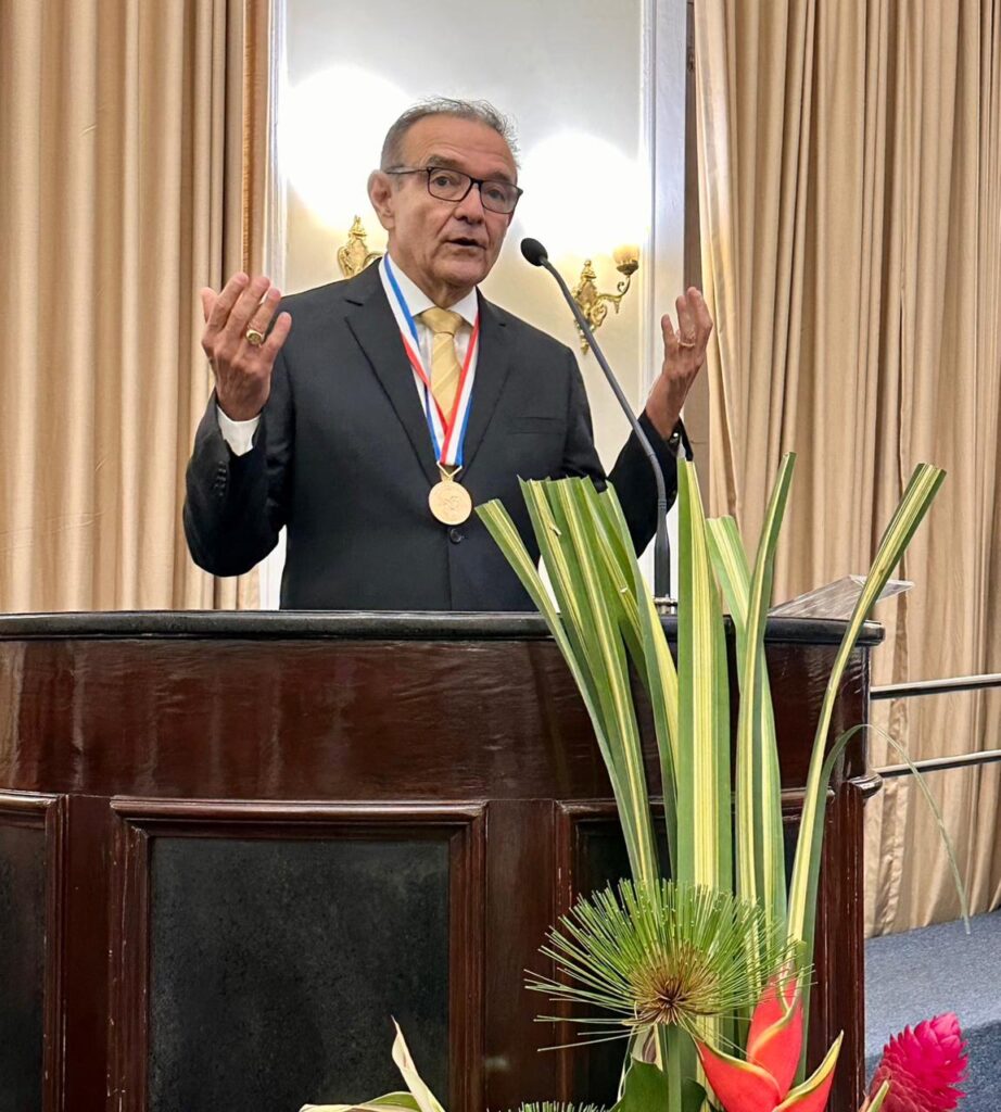 Ontem (21), o nosso articulista, intelectual e presidente da Academia Alagoana de Letras, o engenheiro Alberto Rostand Laverly, foi agraciado na Assembleia Legislativa de Alagoas com a Comenda Divaldo Suruagy. A propositura foi do deputado Inacio de Loyola que falou em nome dos parlamentares, tendo usado também da palavra o arquiteto Ênio Lins, que lembrou a trajetória do homenageado e da sua mãe, Marlene Lanverly, chefe da Casa Cuvil nos treis governos de Divaldo Suruagy, de quem ele foi colega de secretariado. O homenageado fez um pronunciamento de improviso, enaltecendo a figura do ex governador que dá nome a comenda, bem como a sua mae, pelo espírito público que sempre demonstrou e que foi exemplo para tantos como ele e sua irmã Marcia Lanverly, que esteve presente na solenidade. Muitas autoridades alagoanas estiveram presente ao evento, considerado o de maior afluência de pessoa já ocorrido naquela dependência, considerando o fato dele ter sido realizado num dia em que não havia sessão plenária e que uma grande quantidade de parlamentares lá estiveram para prestigiar o homenageado. Ao final do seu discurso Alberto Rostand foi aplaudido de pé pelos presentes.