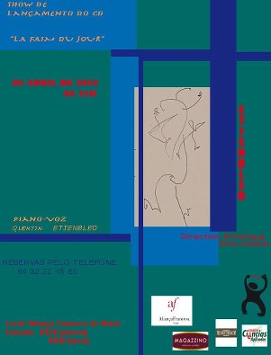 Nesta e terça-feira (30) a Aliança Francesa de Natal promove o lançamento do CD “La faim du jour” do pianista Quentin Etienbled, a partir das 21h. Ingressos: R$ 20 (R$10/meia). Reservas: (84) 3222 1558.