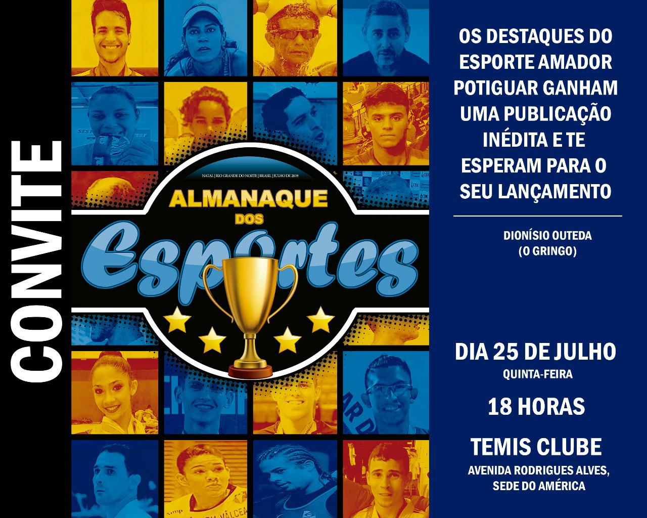 Idealizado pelo jornalista Dionisio Outeda, a publicação “Almanaque dos Esportes” será lançado nesta quinta-feira (25), às 18h, no Temis Clube, Av. Rodrigues Alves, na sede do América.