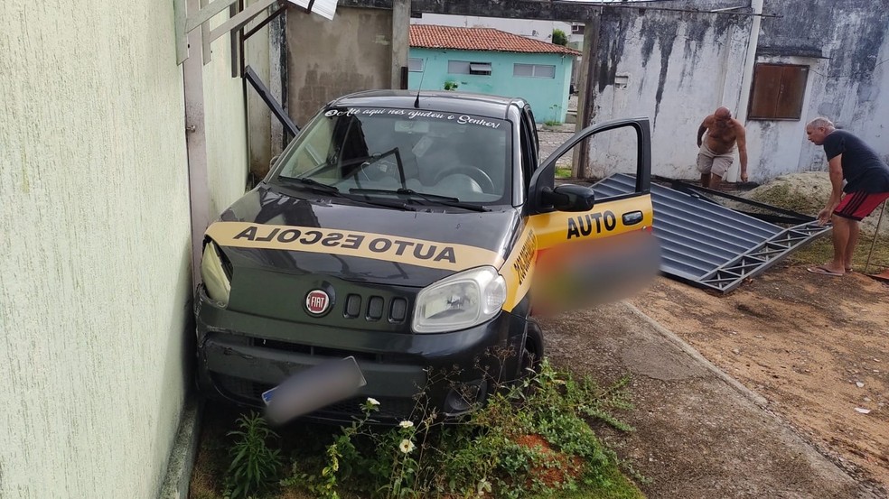 Uma aluna de autoescola perdeu o controle do carro, derrubou um portão e invadiu uma casa durante uma aula de baliza na Zona Leste de Natal.