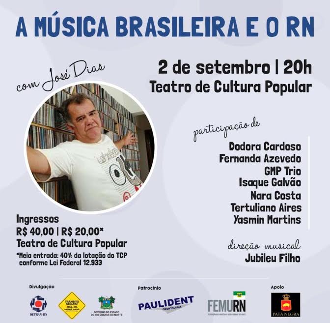 Nesta sexta-feira (02) é dia de Música Brasileira e o RN, projeto desenvolvido pelo produtor cultural Zé Dias. Será às 20h no TCP.