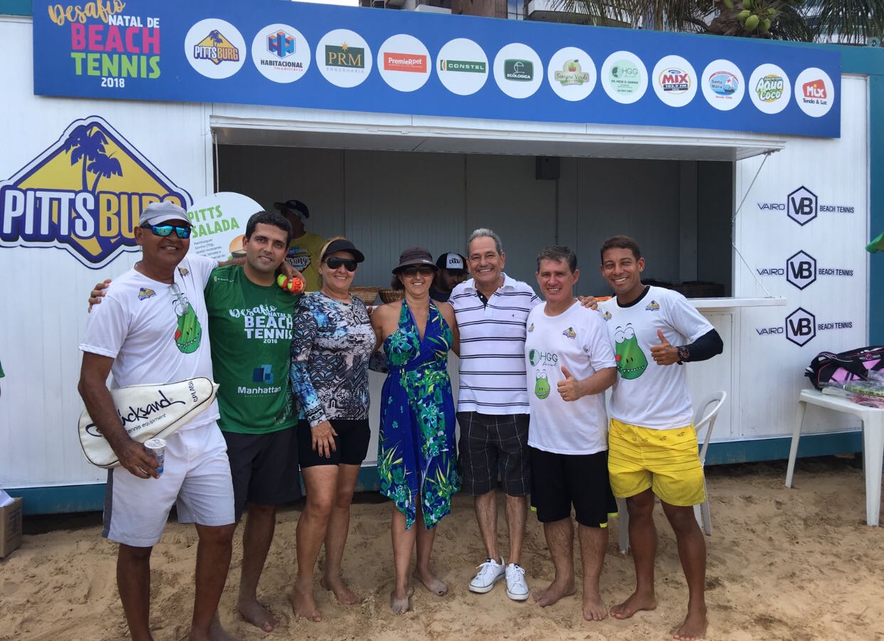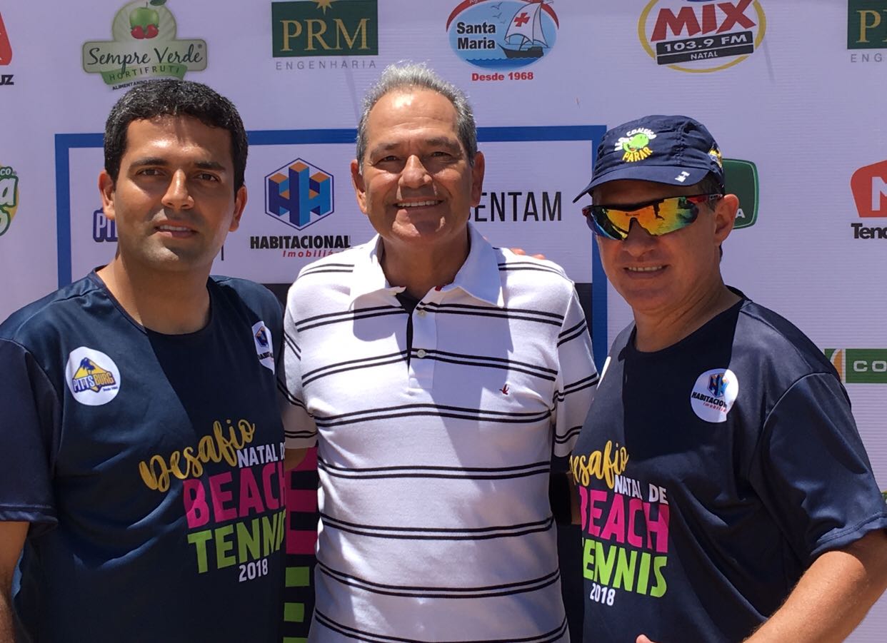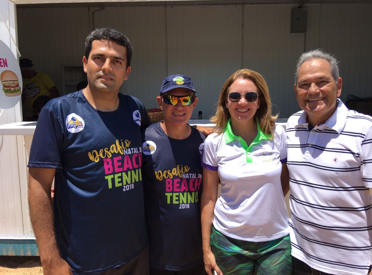 A AMAP – Associação de Moradores de Areia Preta, está apoiando a realização do Campeonato de Beach Tennis praiano, patrocinado pelo Miami Beach Tennis, que acontece neste sábado e termina amanhã, domingo, na praia de Miami, no bairro de Areia Preta. O Torneio congrega atletas de vários bairros de Natal, inclusive dos vizinhos bairros de Petropolis, Tirol, Lagoa Mova e Mãe Luiza, num congraçamento de desportistas que amam as atividades praianas. Na foto acima, os organizadores do evento, Kleber e Angelo, além do presidente da AMAP, Nelson Freire. Abaixo, novoas fotos com integrantes da Associação de Moradores, da Prefeitura Municipal de Natal e outros organizadores do evento.
