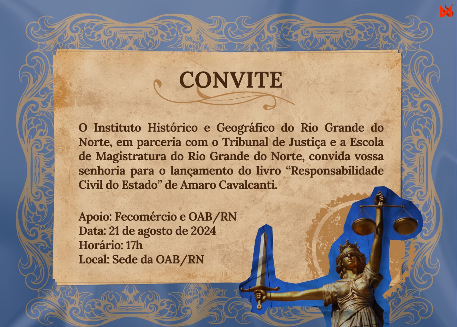 O IHGRN, juntamente com o Tribunal de Justiça e a Escola de Magistratura do Rio Grande do Norte, convidam os leitores do Blog Ponto de Vista para o lançamento do livro “Responsabilidade Civil do Estado” de Amaro Cavalcanti, nesta quarta-feira (21), às 17h na sede da OAB/RN.