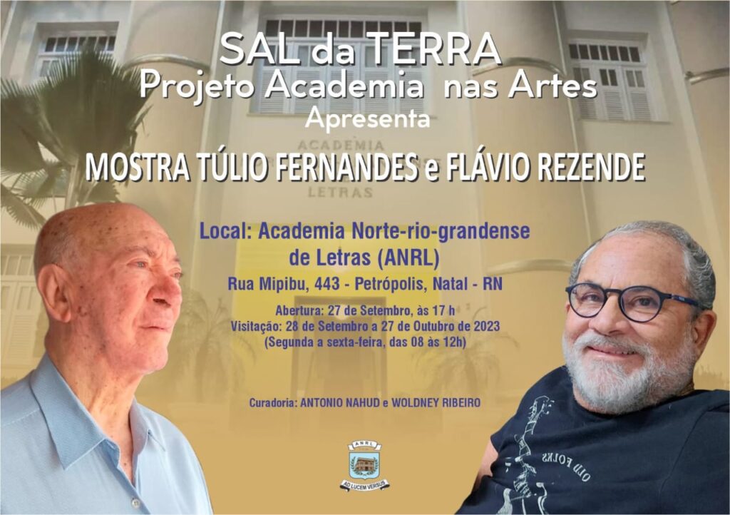 Nesta quarta-feira (27), a Academia Norte-rio-grandense de Letras (ARL) recebe o projeto “Sal da Terra” com uma mostra de Túlio Fernandes e Flávio Rezende. A abertura será hoje, às 17h e seguirá até o dia 27 de outubro.
