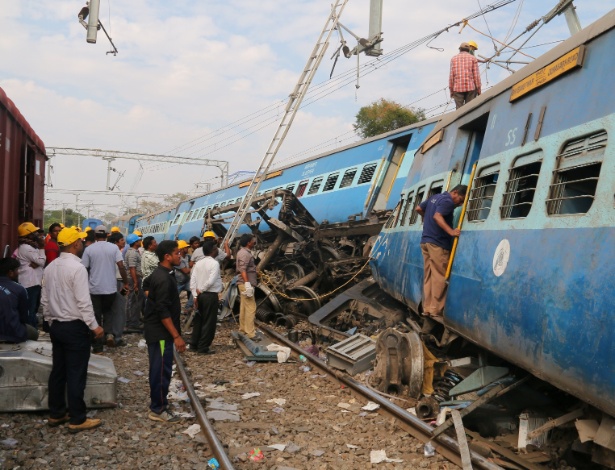 Os socorristas ainda tentaram neste domingo encontrar sobreviventes após o descarrilamento de um trem na Índia, que deixou ao menos 36 mortos, na última de uma série de tragédias envolvendo a rede ferroviária do país. Oito dos 21 vagões e a locomotiva do trem descarrilaram ontem às 23h (15h30 de Brasília) na região de Kuneru, perto da fronteira entre os estados de Odisha e Andhra Pradesh. “O balanço de mortos subiu a 36. É possível que aumente”, informou o porta-voz do Sistema Nacional de Redes Ferroviárias. 50 pessoas ficaram feridas e foram transferidas a dois hospitais da região. Este acidente foi registrado dois meses após um descarrilamento de características similares em Kanpur, no qual 146 pessoas morreram. O trem havia saído da cidade de Jagdalpur rumo a Bhubaneswar, capital de Odisha, mas descarrilou em um ponto situado a 160 km da localidade de Visakhapatnam. As autoridades e as equipes de resgate trabalharam a noite toda para tentar localizar sobreviventes e não excluem que um ato de sabotagem dos rebeldes maoistas tenha causado a tragédia.