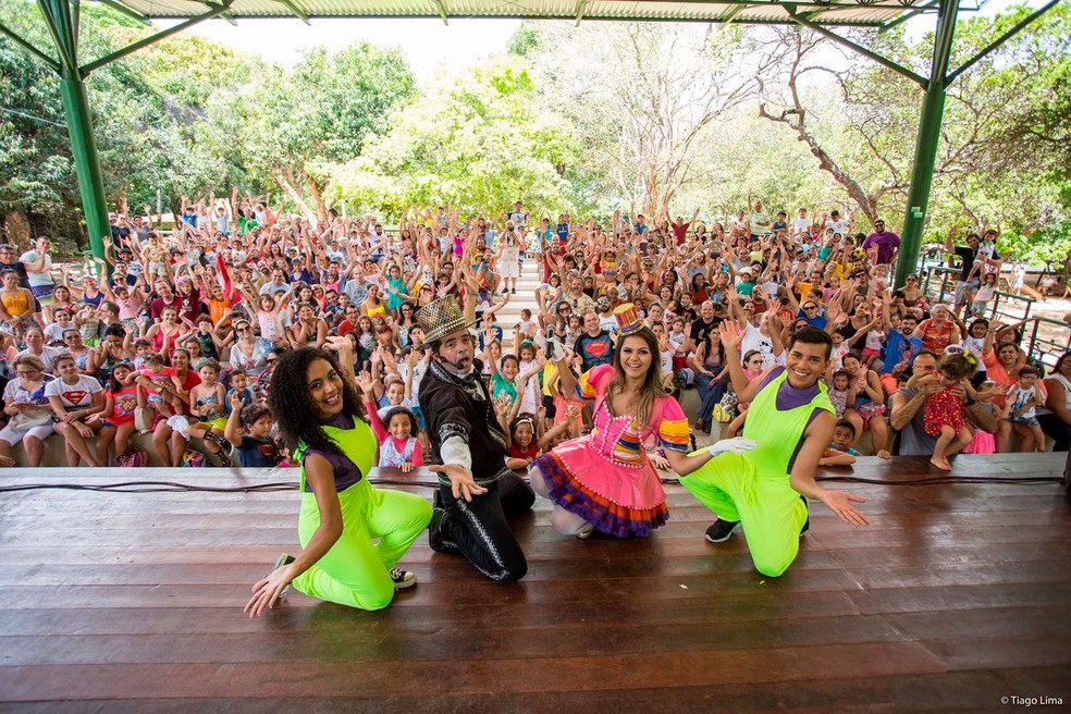 O espetáculo “Estação dos Contos”, do grupo potiguar Estação de Teatro, conta histórias intercaladas com músicas e brincadeiras populares, contadas e cantadas pelas atrizes Ananda Krishna, Nara Kelly e Manu Azevedo.