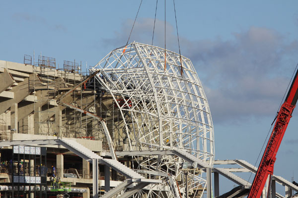 A empresa OAS está concluindo o levantamento de avanço das obras na Arena das Dunas, que será divulgado até o dia 3 de agosto. Os números são mantidos sob completo sigilo, mas a Secopa ressalta que o percentual já venceu a casa dos 80%, podendo inclusive se aproximar dos 85% do total do projeto com o início da fixação da cobertura.