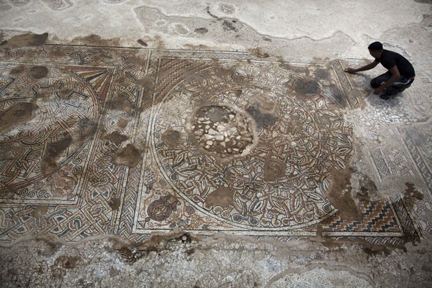 Arqueólogos anunciaram nesta semana a descoberta de um piso de mosaico com mais de 1.500 anos, encontrado nos campos de Kibbutz Beit Kama, na região do deserto de Negev, que ocupa parte de Israel. A peça histórica foi encontrada antes que a região fosse pavimentada, para a construção de uma estrada no país. O mosaico com as cores vermelho, preto e amarelo tem imagens de pássaros, formas geométricas e diferentes tipos de flores. Segundo os estudiosos, ele teria sido elaborado para enfeitar um prédio público do antigo Império Bizantino. Além do mosaico, também foi encontrado um grupo de estruturas, piscinas e um sistema para distribuição de água.