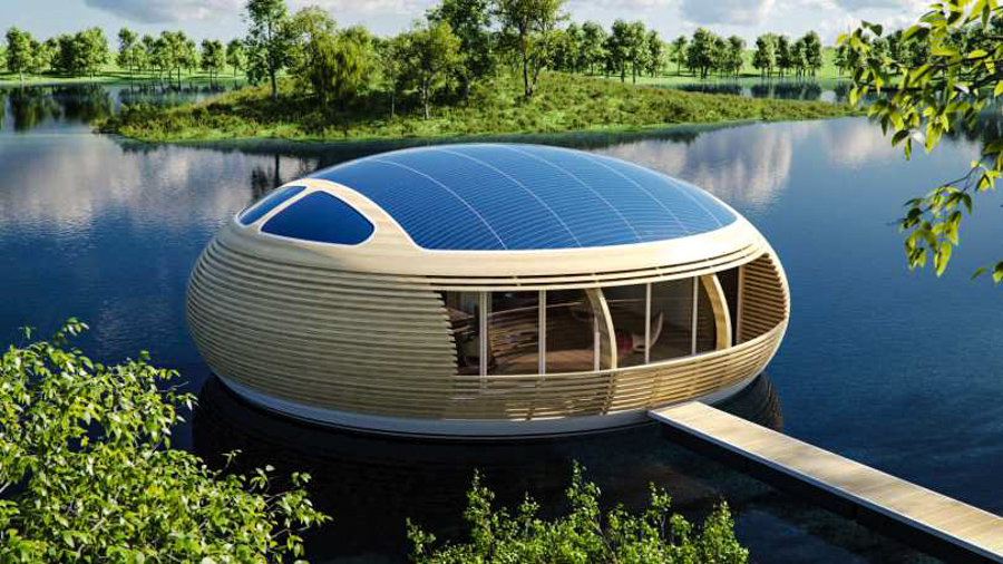 O arquiteto italiano Giancarlo Zema projetou uma casa um pouco diferente das que estamos acostumados a ver. Batizada de “WaterNest 100”, ela é uma casa circular flutuante, ou seja, não fica em terra firme, mas sim, em um rio. Acessível ao continente por meio de uma passarela, a casa é totalmente ecológica, e foi construída com material 100% reciclado, além de possuir ventilação natural e 60 painéis solares, que garantem toda a energia necessária. De acordo com Giancarlo, que é especializado em arquitetura semi-submersa, o local possui 100 metros quadrados, o suficiente para uma família de 4 pessoas, por exemplo. A WaterNest 100 está à venda por nada menos do que 500 mil dólares.