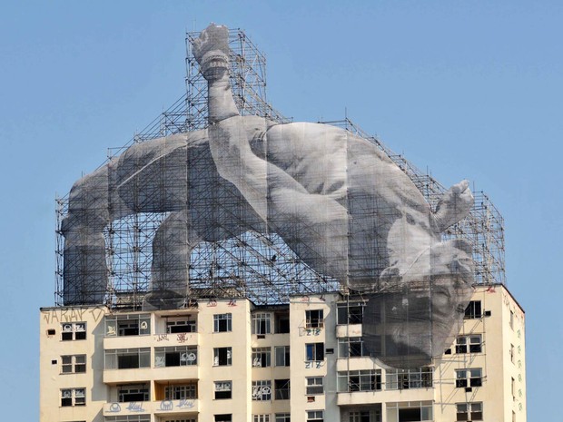 Reconhecido internacionalmente pela sua arte urbana, JR ainda não divulgou detalhes sobre a técnica utilizada na construção destas gigantescas instalações artísticas no Rio.