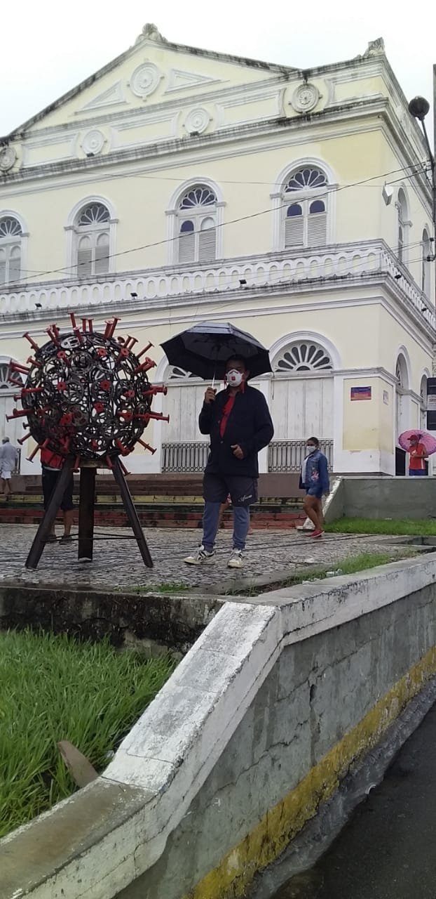 O artista plástico Fábio di Ojuara realizou uma intervenção artística feita para alertar as pessoas do perigo que o Covid-19 esse vírus que vem matando milhares de pessoas mundo a fora e aqui ma nossa cidade, um vírus invisível que eu fiz visível e próximo pra que as pessoas reflitam sobre a gravidade desse bicho…