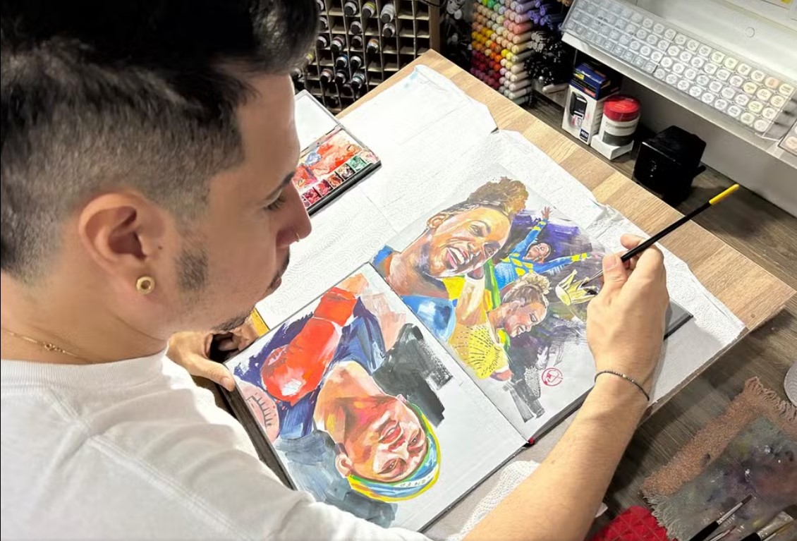 Não é a primeira vez que ele faz homenagem a um atleta brasileiro. Na última Copa do Mundo, o artista fez desenhos de atletas da Seleção Brasileira de Futebol. A ilustração do atacante Richarlison chamou a atenção do atleta, que chegou a repostar o desenho em suas redes sociais.