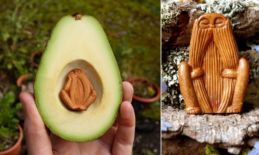 Enquanto preparava um abacate para comer, a artista irlandesa Jan Campbell ficou reparando na beleza de sua semente. Através do seu olhar, ela pensou em todo o potencial da peça, caso fosse esculpida. Desde então, nenhuma semente de abacate vai parar no lixo em sua casa.
