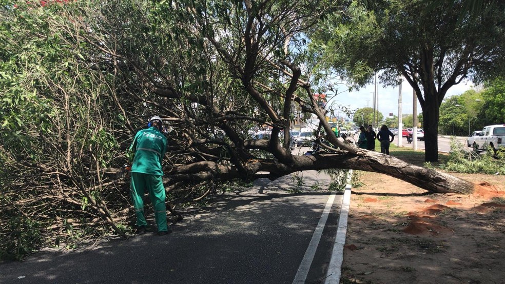 Uma árvore caiu na Avenida Engenheiro Roberto Freire na manhã desta segunda (8) e interditou as três pistas no sentido Ponta Negra.