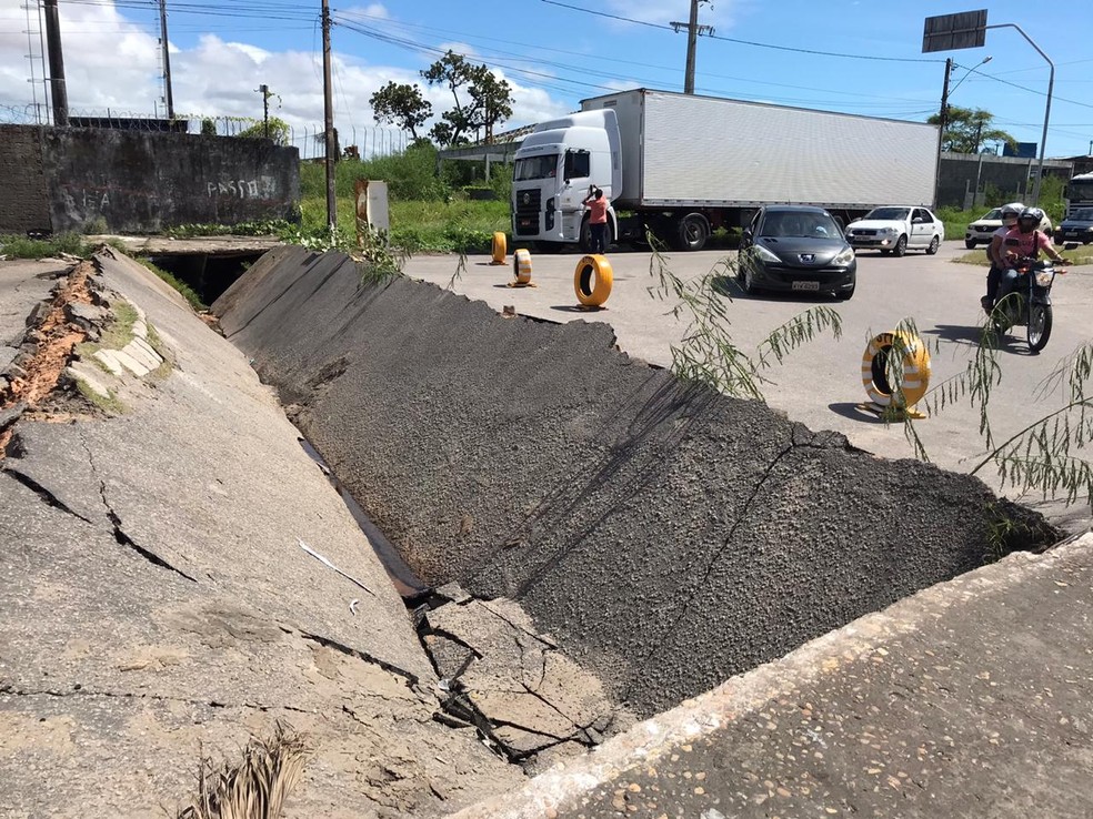 Isso porque o afundamento da pista no trecho foi de um lado ao outro da avenida, sem deixar nenhuma brecha para o tráfego dos automóveis, que estão fazendo um desvio para seguir viagem. O trecho foi sinalizado pela Secretaria Municipal de Mobilidade Urbana (STTU).