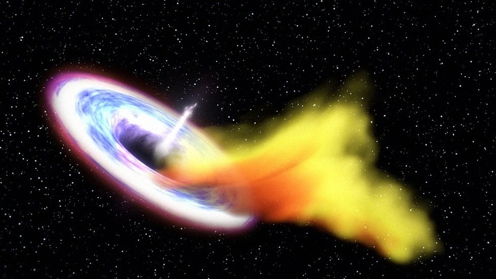 Astrônomos registraram o “arroto” duplo de um buraco negro após devorar um “banquete” de gás quente.
