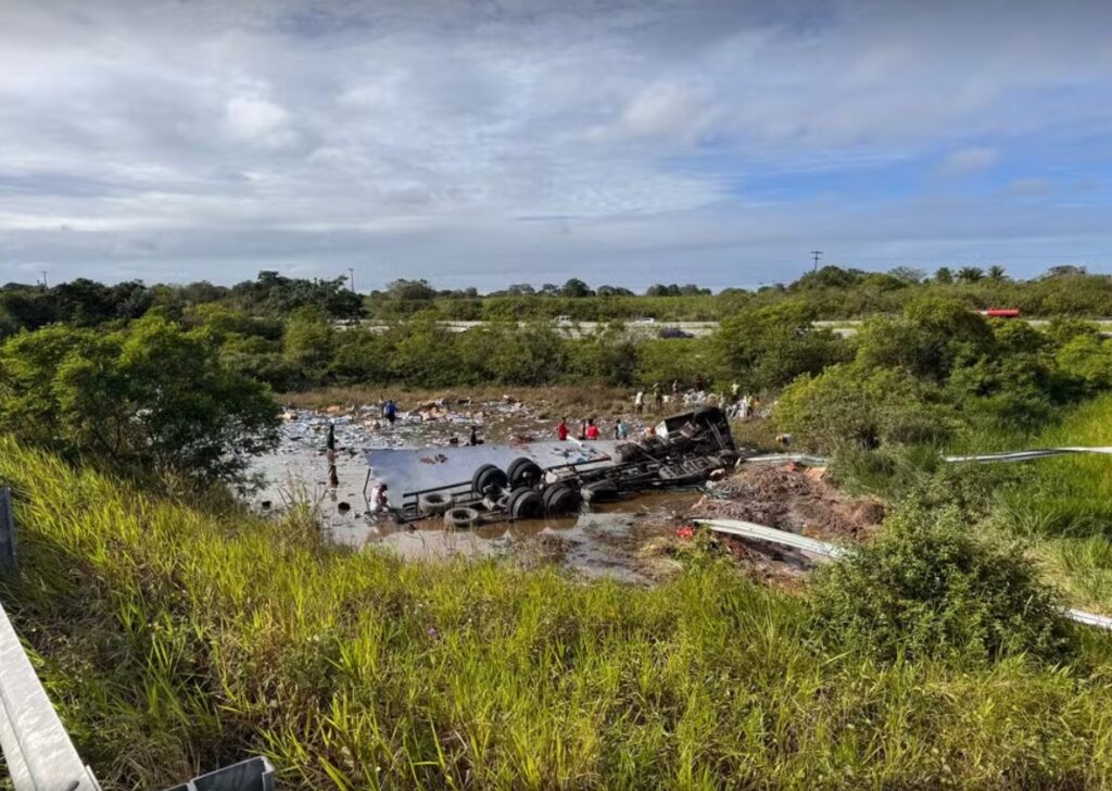Carreta tomba e causa interdição de alça de acesso à BR-304 na Grande Natal