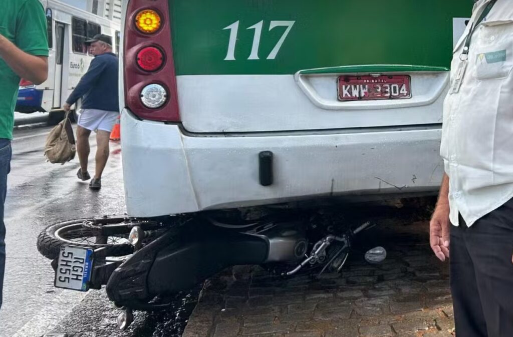 Motociclista é atingido por ônibus e vai parar embaixo do veículo em Natal