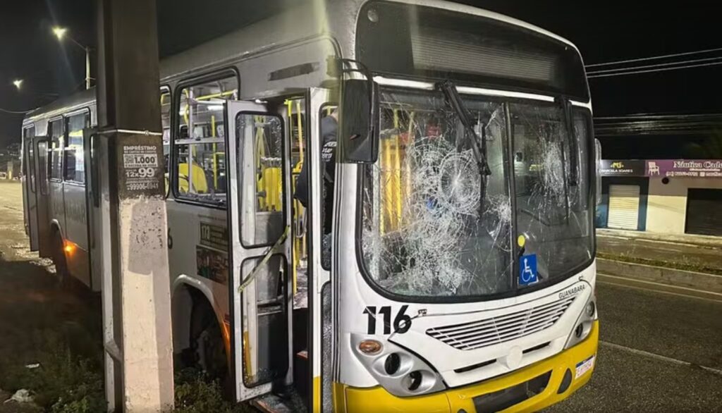 Ônibus do transporte público é depredado após prisão de foragido em Natal