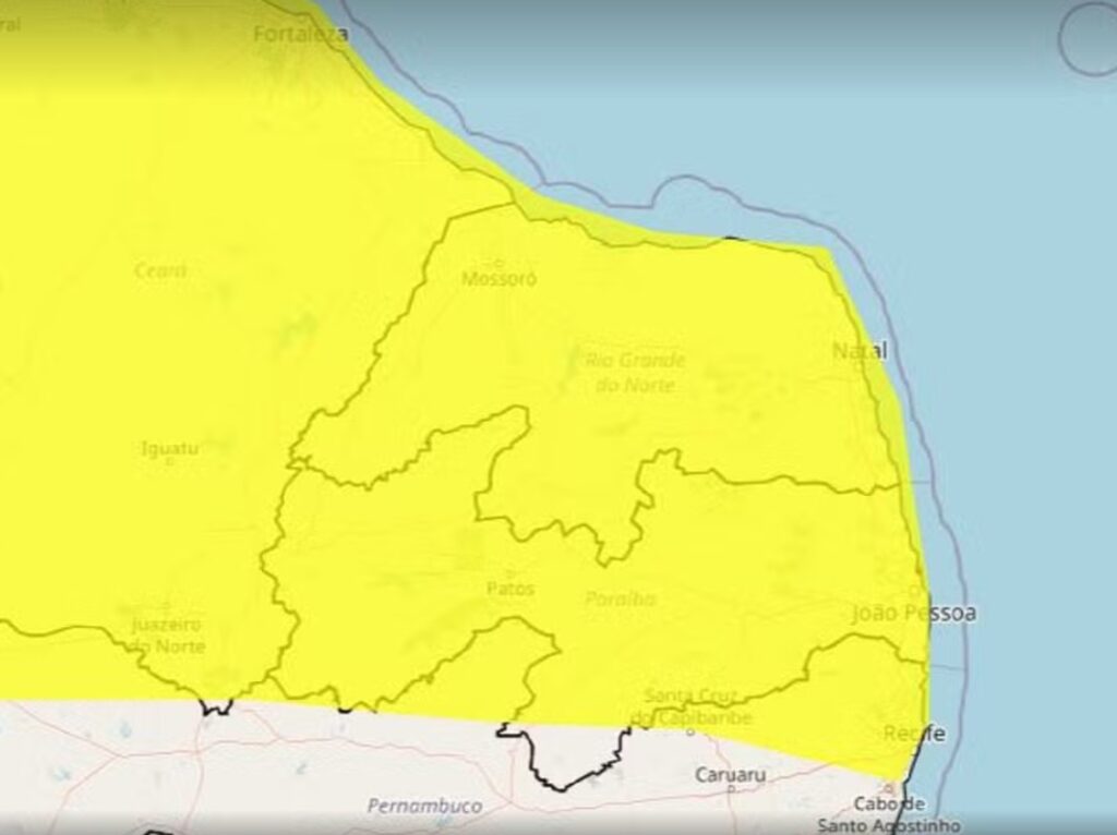 O Instituto Nacional de Meteorologia (Inmet) renovou o alerta de chuvas intensas, atingindo, dessa vez, todas as cidades do Rio Grande do Norte. O aviso vale até 10h dessa terça-feira (22). Os alertas mais recentes iniciaram no sábado. O alerta emitido é o amarelo, classificado como de perigo potencial, sendo o nível mais baixo na […]