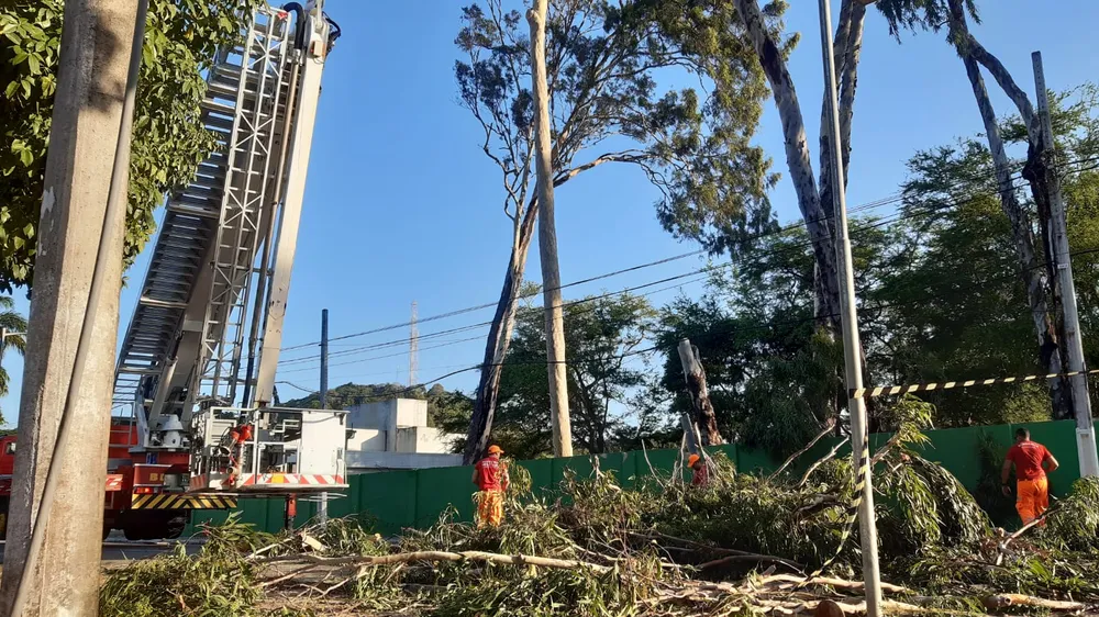 Ao todo, 12 árvores serão retiradas porque correm o risco de desabar, segundo os bombeiros. Cinco eucaliptos foram retirados desde a última segunda-feira (10).