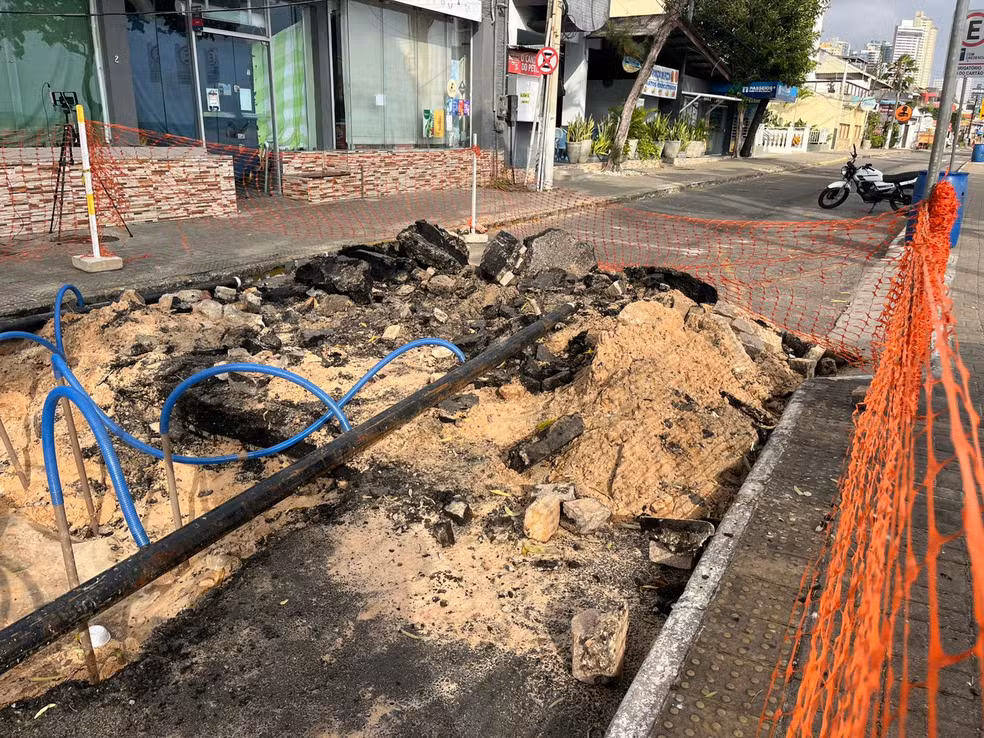 De acordo com a Caern, o serviço de reparo de uma rede coletora de esgotos é necessário após um afundamento identificado na tubulação.