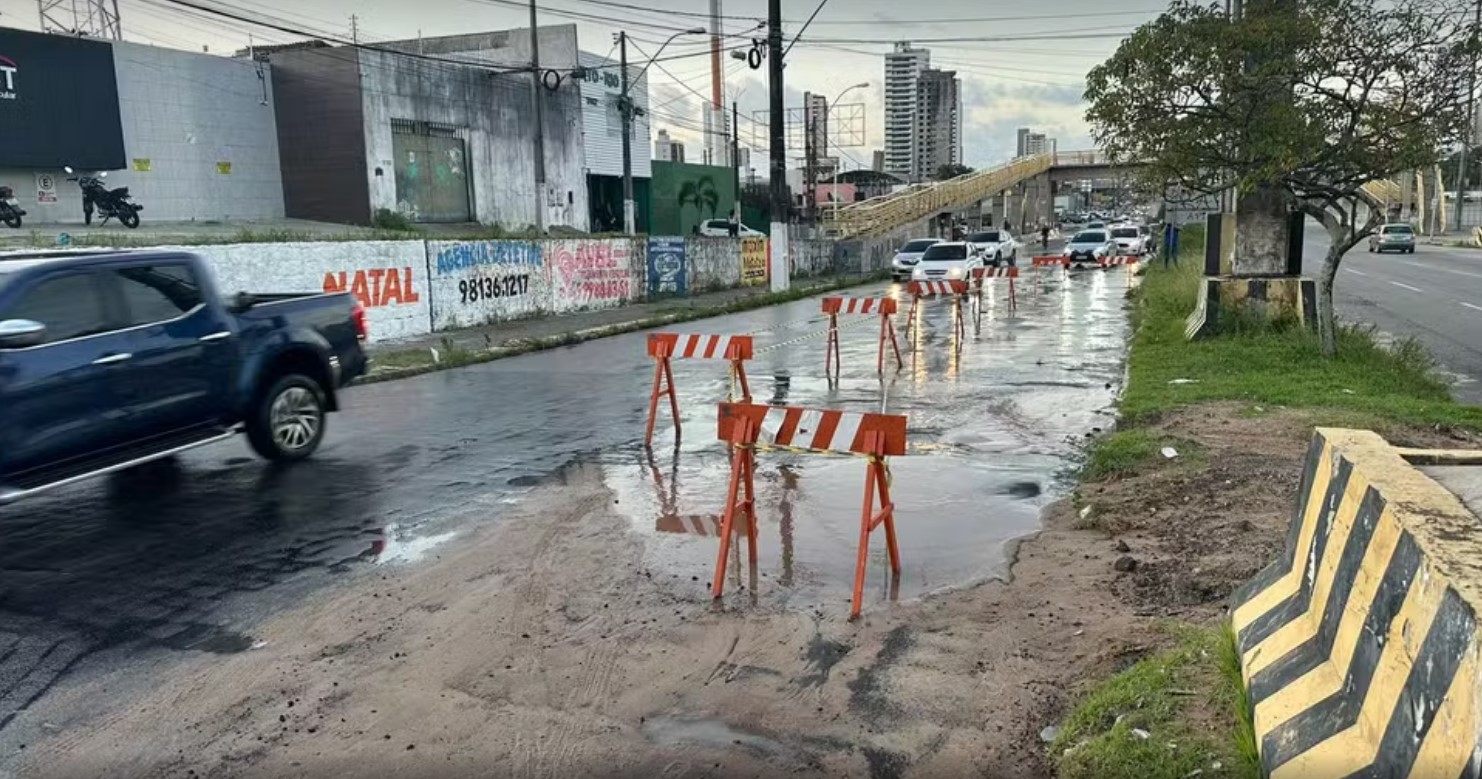 Um vazamento na rede fez com que parte da pista fosse interditada na tarde de sexta-feira (14). A Caern informou que concluiu a pavimentação da pista com paralelepípedo.