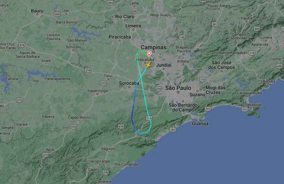 A aeronave, que decolou de Viracopos às 8h, tinha como destino o Aeroporto Internacional Salgado Filho, em Porto Alegre (RS). No entanto, declarou situação de emergência e voltou para Viracopos poucos minutos depois, às 8h14.