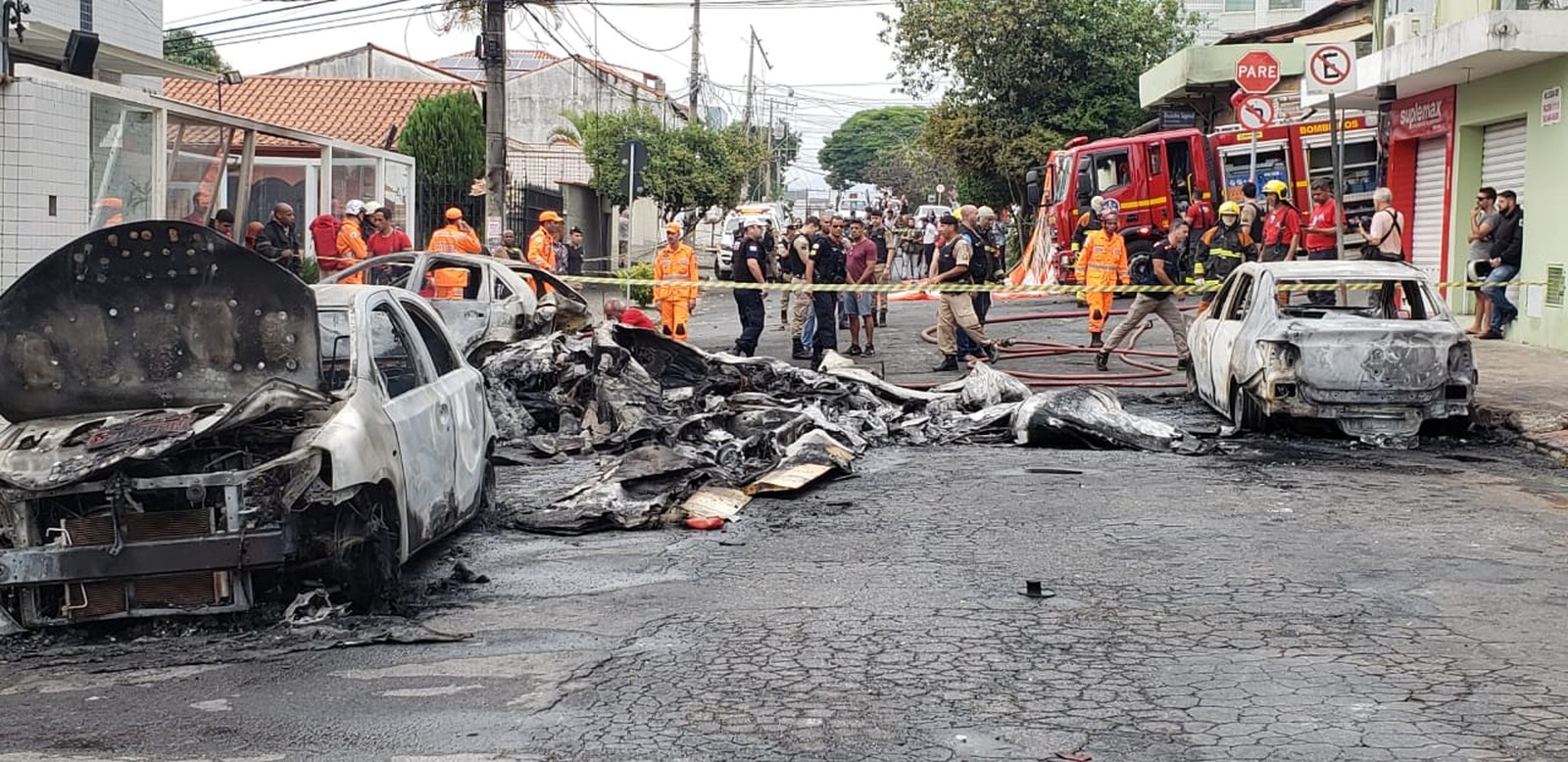 Morador da rua onde o avião caiu, o servidor público Carlos Henrique Pacheco Diniz, de 37 anos, ouviu o momento da explosão. “A gente tentou a apagar o fogo, teve muita explosão e não deu para ajudar mais”. “Eu estava em casa e ouvi um estrondo. Eu saí e vi o primeiro minuto”, completou.