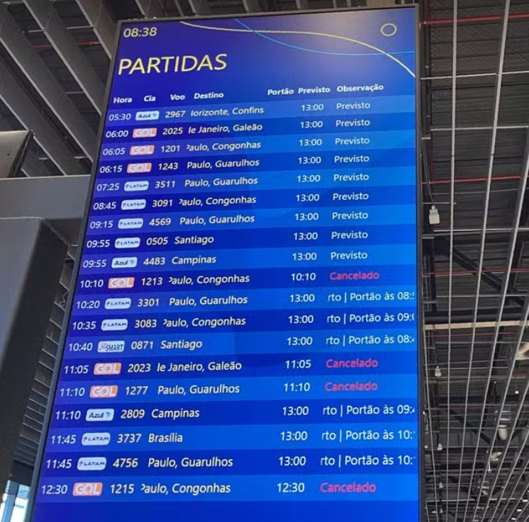 De acordo com a Zurich Airport Brasil, concessionária que administra o aeroporto, pelo menos 54 voos foram cancelados e a companhia está trabalhando para a liberação do local o mais breve possível. Não há previsão de retomada.