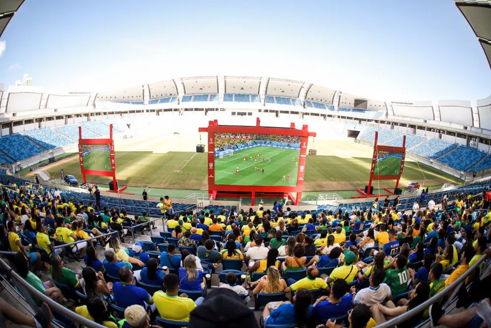 O Brasil enfrenta Camarões nesta sexta-feira, no encerramento da primeira fase da Copa do Mundo. O jogo começa às 16h (horário de Brasília). Em Natal, o torcedor tem eventos com muita música e telões para acompanhar a partida.