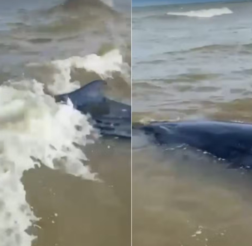 O Centro também disse que há a possibilidade do animal estar ferido, já que se trata um animal oceânico e, pelo o que foi observado nos vídeos, estava aparentando desorientação.