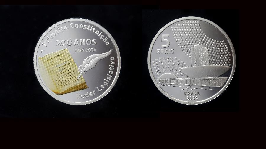 O Banco Central lançou nesta quinta-feira (11) uma moeda em comemoração aos 200 anos da primeira Constituição do Brasil. A peça será produzida em prata e terá cravada em sua face o valor de R$ 5.