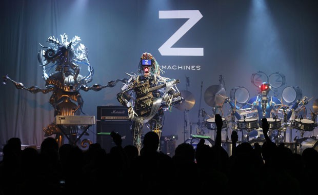 Uma banda de rock formada por três robôs subiu ao palco em Tóquio, no Japão, nesta segunda-feira (24), para tocar três músicas em um show para cerca de 100 pessoas. Uma das músicas teve a participação das pop stars japonesas Amo e Ayamo. O show de estreia da banda, chamada “Z-Machines”, foi realizado ao vivo. O grupo é composto pelo guitarrista Mach, pelo tecladista Cosmo e pelo baterista Ashura.
