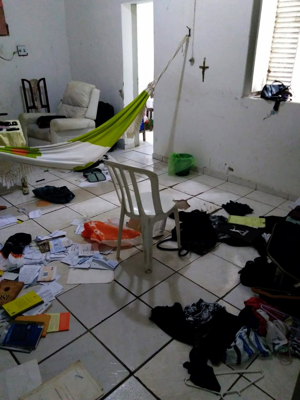 Os criminosos trancaram as vítimas dentro de um dos quartos, enquanto procuravam dinheiro, joias, celulares e recolhiam aparelhos de televisão. Segundo a assessoria, como não encontraram dinheiro, levaram os objetos de valor.