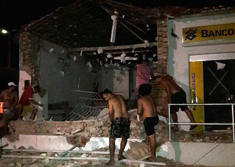 Bandidos fortemente armados explodiram uma agência bancária e levaram o caixa eletrônico na cidade de Tangará, distante cerca de 82 km de Natal, durante a madrugada desta quarta-feira (25). De acordo com a polícia, a quadrilha invadiu a cidade por volta da 1h30. Cerca de dez homens divididos em dois veículos se deslocaram até o centro do município e explodiram o prédio onde funciona um terminal de autoatendimento do Bradesco.